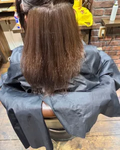 そこで今回は、先にカラーを均一化・髪内部の状態を揃える縮毛矯正がかかりやすい“土台”を作るという工程を踏みました。